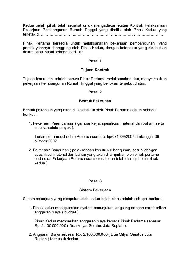 Contoh Surat Perjanjian Kontrak Kerja Proyek Pembangunan from jalancuruty.web.app